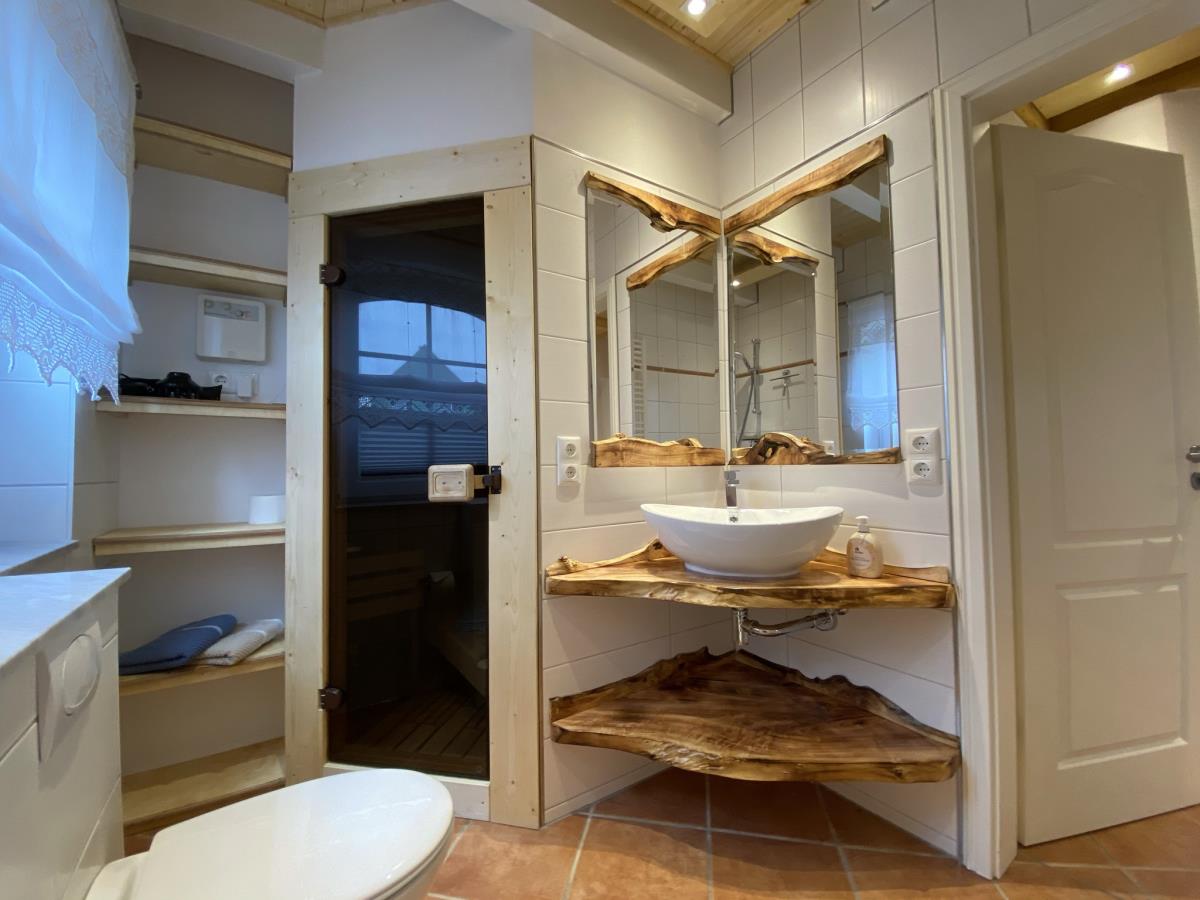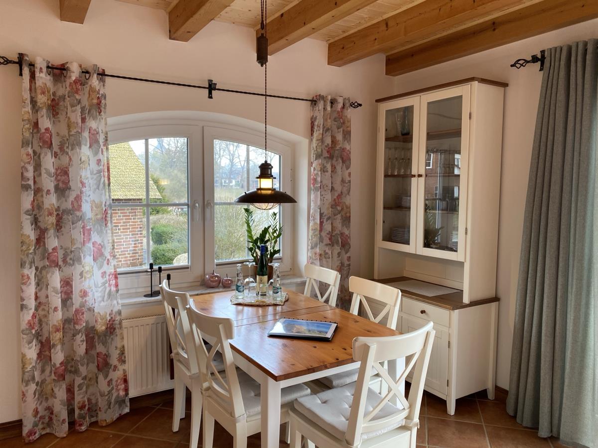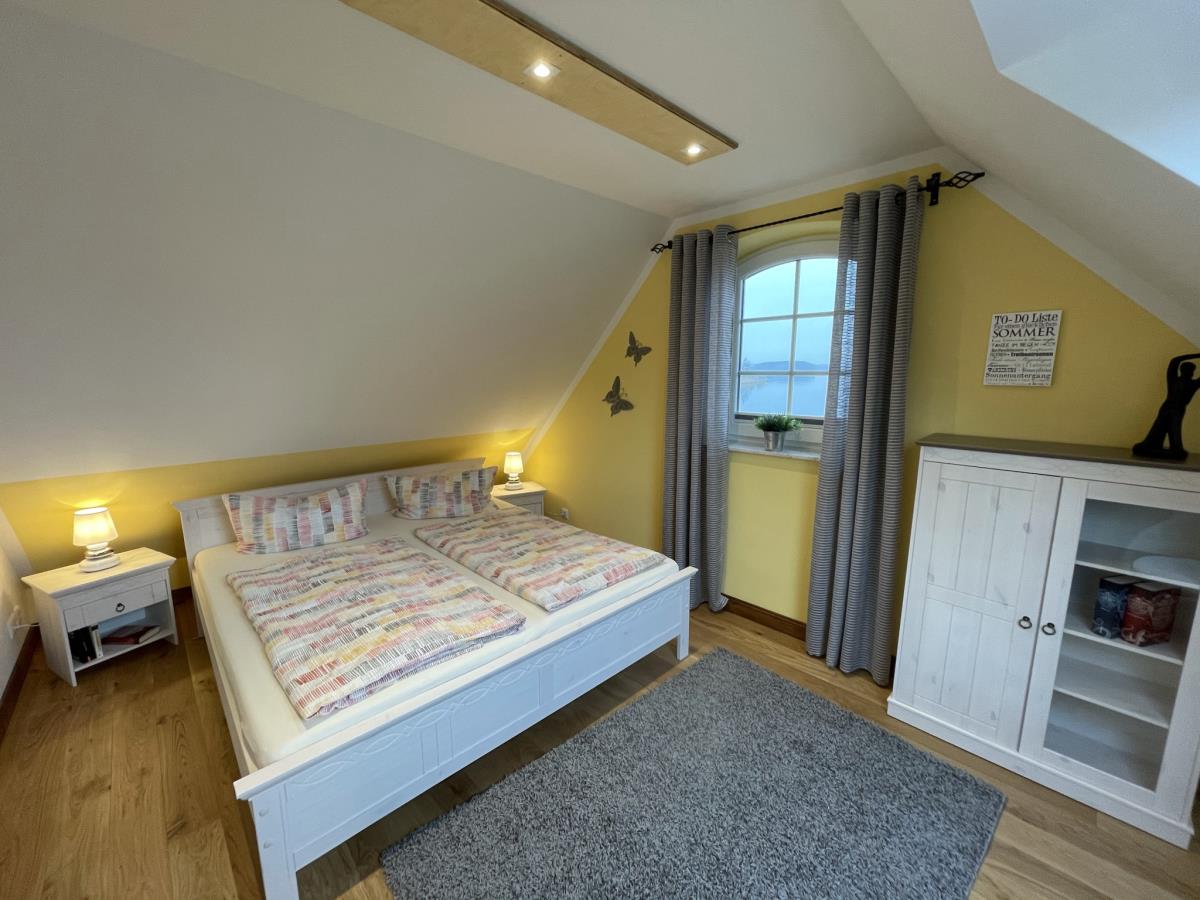 Das liebevoll eingerichtete Haus bietet Platz für bis zu 5 Personen. In der oberen Etage befinden sich zwei gemütliche Schlafzimmer, die in der warmen Farbnote „Ausklang des Sommers“ gestaltet sind, sowie ein kleines Duschbad.