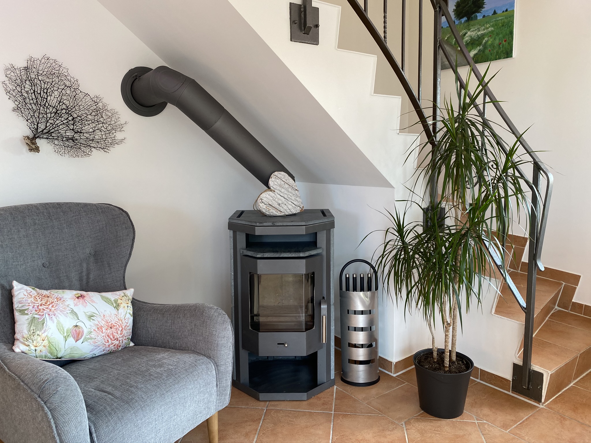 Im Erdgeschoss erwartet Sie ein charmantes Wohn- und Esszimmer mit Kamin, einem 55“ Flachbild-TV (inkl. Netflix und Disney+) und einem großen Terrassenfenster, das einen atemberaubenden Blick auf den See freigibt. Die voll ausgestattete Küche lässt keine Wünsche offen und bietet alles für kulinarische Genüsse. Das angrenzende Badezimmer ist mit einer Badewanne für entspannte Momente sowie einer kleinen Waschmaschine ausgestattet.